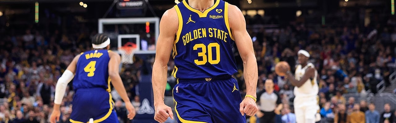 11, c’est le nombre de paniers à 3 points réussis par Stephen Curry face aux Pacers. Le meneur des Warriors continue ses folies à plus de 35 ans en sortant un phénoménal 11/16 à longue distance. Plus adroit que jamais, le Chef a toujours dans un coin de sa tête le record de 14 paniers à 3 points de Klay Thompson, son Spash Bro.