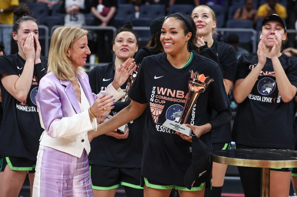 Sans aucune surprise, Napheesa Collier hérite du titre de MVP de cette Commissioner’s Cup 2024. Dominante dans la peinture, elle est absolument essentielle dans le jeu des Lynx. Collier finit hier soir avec 21 points, 6 rebonds, 3 passes décisives, 3 interceptions. Elle a surtout brillé avec un 3/3 à 3 points, qui n’est pourtant pas son exercice de prédilection.