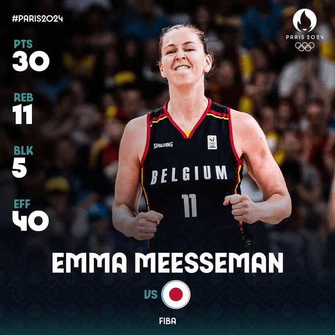 Face au Japon, la leader de cette équipe belge s’est élevée à son meilleur niveau. Emma Meesseman devient la deuxième joueuse de l’histoire à cumuler au moins 30 points, 10 rebonds et 5 contres.