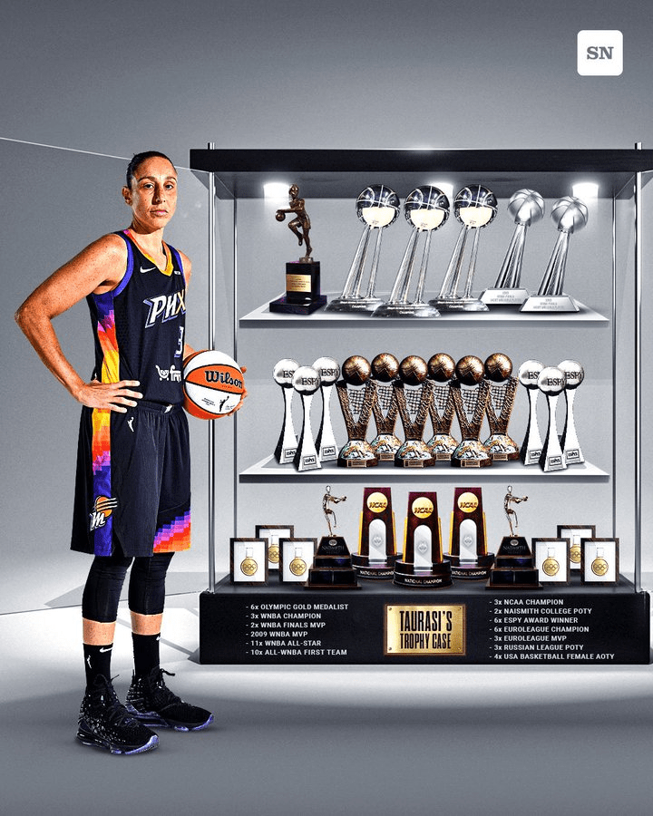 Diana Taurasi est aussi triple championne NCAA avec la mythique fac d’UConn, et 6 fois championne olympique avec Team USA sans oublier ses nombreux trophées en Europe, dont 6 Euroleague.